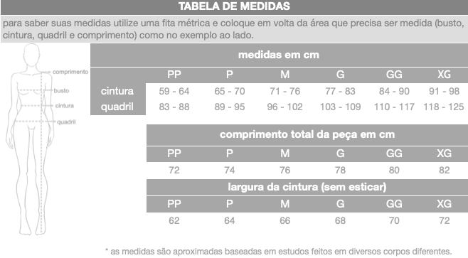 então depois de alguns estudos feitos por mim (Mirnna), criamos a tabela de medidas abaixo que de acordo com o tamanho do seu corpo você consegue encontrar o seu tamanho na nossa marca.